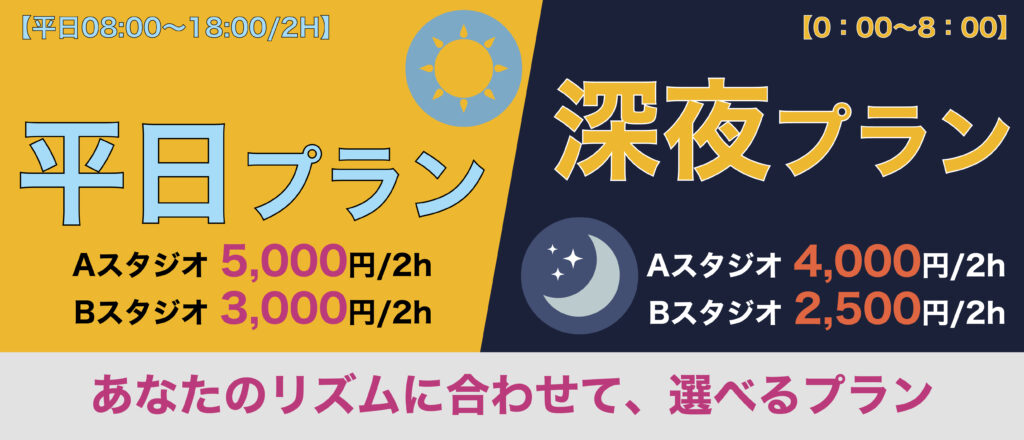 新宿レンタルダンススタジオailee(エレ)の深夜・早朝プランは0時から8時まで快適に利用できます。始発でゆったり帰りたいという方もじっくり利用できます。さらに深夜利用して眠くなっても大丈夫。簡易ベッドもご用意しています(別途1台1,000円)女性にはうれしいアメニティも充実していて、歯ブラシ、ヘアピン、ヘアゴム、コテやドライヤーなど更衣室に設置しています。メンバーが深夜しか集まらないのダンサー、アフレコのサンプルを納得いくまで収録したい方や(録音ルーム別途1,000円)深夜に楽器演奏したい方、タップダンスのステップの練習をしたい方など自由にご利用できます。
